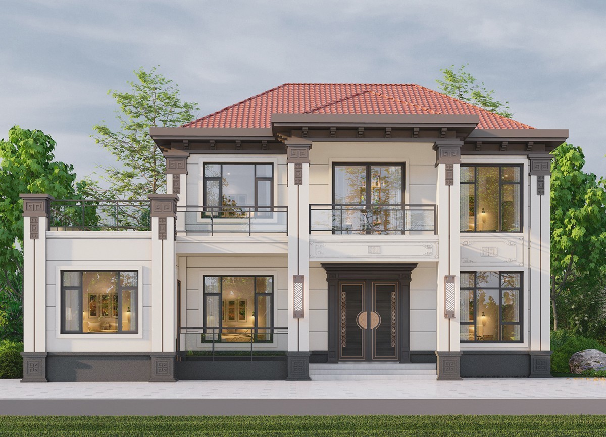 衡水005 两层新中式(11.36x11.76米)-【易设计】